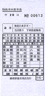 特殊車内補充券⇒車内片道乗車券 |