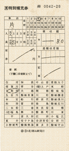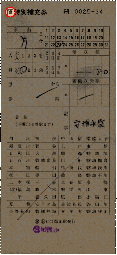 特別補充券【仙台印刷場−仙台鉄道管理局系統】〜JR券〜