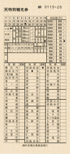 特殊区間用特別補充券 (2)駅名式大人小児用【新潟印刷場-新潟鉄道管理局系統】〜JR券〜