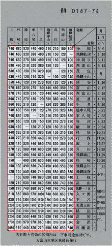 | 100km | 幹 線 | 1540円 |