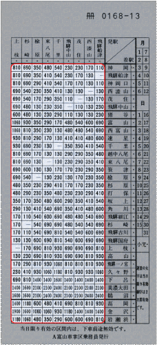| 100km | 幹 線 | 1380円 |
