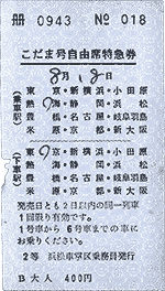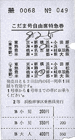 自由席特急券は列車指定なしに 『こだま号自由席特急券』
