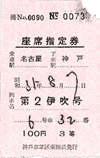 座席指定券・指定席券【大阪印刷場系統】〜等級券〜