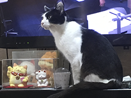 食事:朝食はひたすら管理人さんについて回って、ひたすら泣き続けるニャオン。 居場所:大好きなパソコンチェアを譲って欲しいときには、右手で「チョイ、チョイ」として、お願いできるニャ。 |